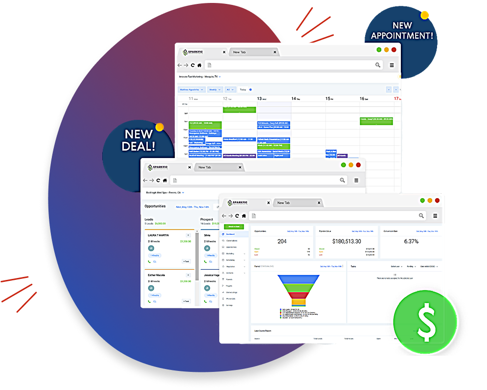Use our drag-and-drop form and funnel builders to create landing pages that convert traffic to leads that get stored in Sparkfic CRM.